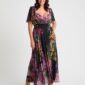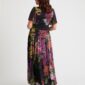 Joseph Ribkoff Chiffon & Satin Foiled Floral Print Poncho Top