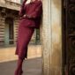 Joseph Ribkoff Sweater Knit Pullover With Polo Collar ln Merlot