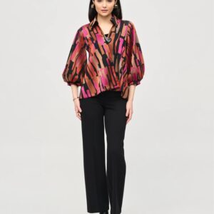 Joseph Ribkoff Chiffon & Satin Foiled Floral Print Poncho Top
